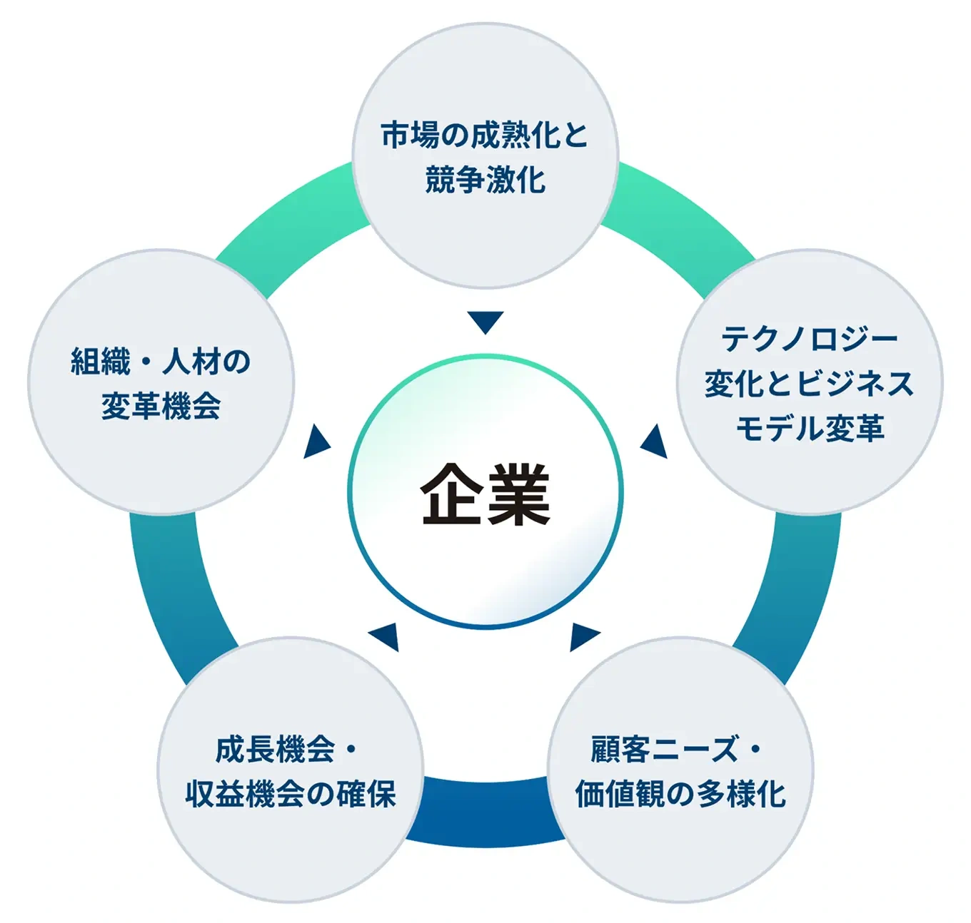 新規事業の立ち上げが求められる背景には、企業を取り巻く以下のような環境変化があります。
