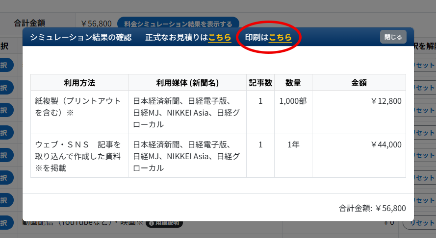 料金シミュレーションのデータは引き継がれません。正式な見積依頼には、ご利用になる記事をすべて登録し、利用方法等を改めて入力してください。